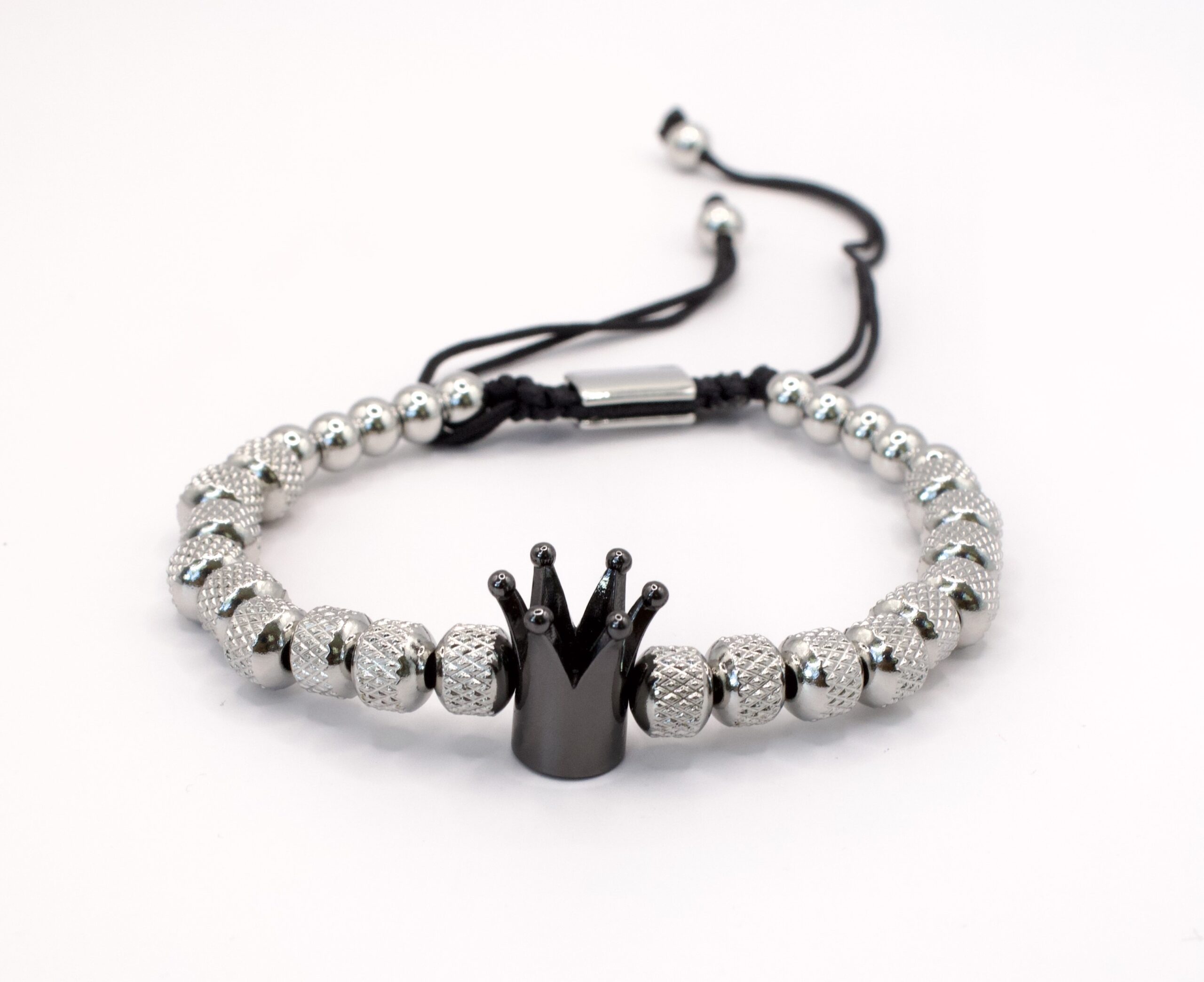 Pulsera hombre bolitas con figura en medio (ajustable)